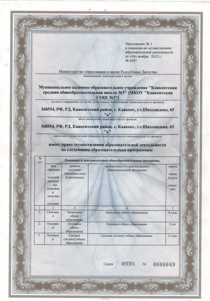 | Адрес местонахождения образовательной организации* | 368554, Республика Дагестан, Каякентский район, с Каякент ул. Шихсаидова д.65 а |